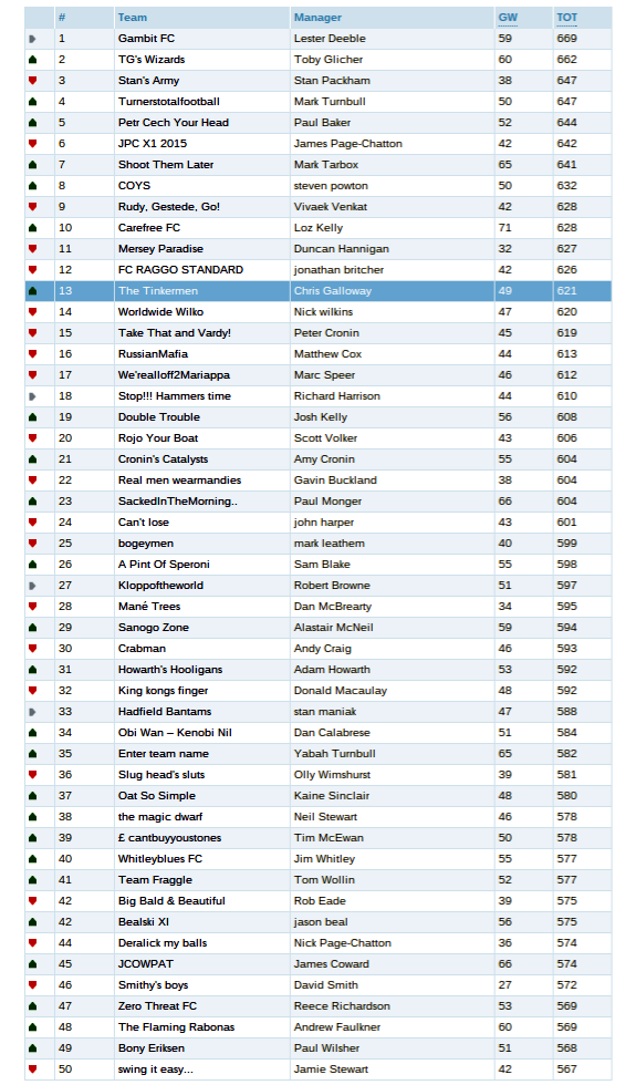 What happened in the FFUK league then? See below for Page 1 of the latest table and the GW review below.