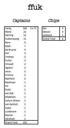 Another GW another eviction. Now just one unlucky FFUKer gets kicked each week in this league. And this time it was one of our junior’s Theo Allen who could only muster 37 points this time and with that becomes this week’s evictee. Still it was a valiant effort to make it through all the double evictions. Apart from his Jamie Vardy cap and a clean sheet for Kelly no-one else did the business for Theo!