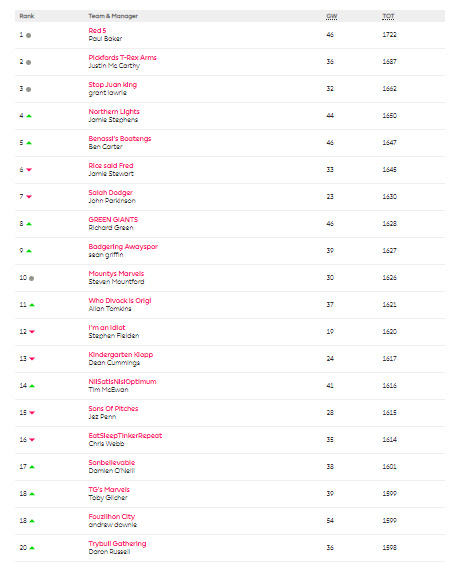 Manager of the Month goes to Wayne Pearson (53rd), who also top scored in the whole league this week with 64 points. Proof there, that Wayne is definitely not firing blanks. The MOTM page has now been updated.