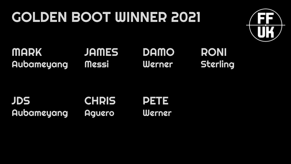 Jamie “I always think that if a penalty-taking attacker from the top six can play 3,000 minutes then he’ll get the golden boot. Martial isn’t likely to be on pens. I’ve no idea if Werner will get enough minutes or be on pens. Harry Kane’s injury record over the last few seasons worries me. Aguero and Jesus will share minutes, plus KDB looks to be in the driving seat for pens. Salah’s output seems to be deteriorating, so I’m gonna go for Aubameyang – I think he’ll be a real talisman for Arsenal and should get the magic 3,000 minutes again this season.“