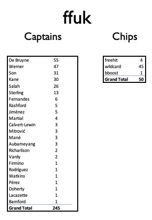 Many visionaries had foreseen the Penalty Fiasco and loaded up on penalty takers. However I can tell you that 133 FFUKers were left disappointed with their captains this week (55 KDB Captains, 47 Werner and 31 Son).