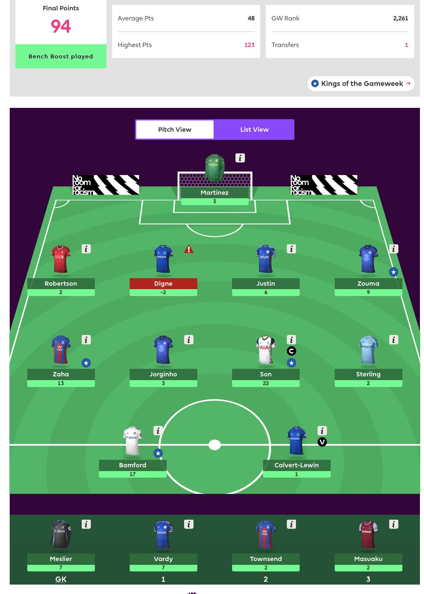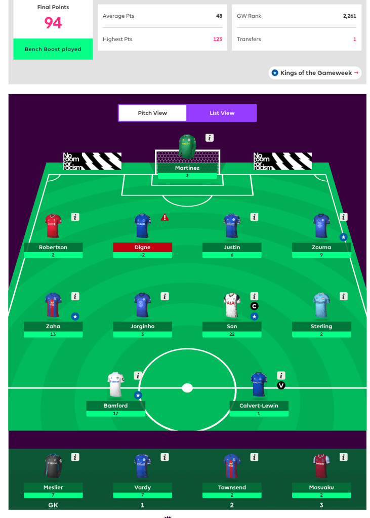 I feel a bit for the people who had double Villa defence and/or Bamford on the bench. We had some amazing bench scores.