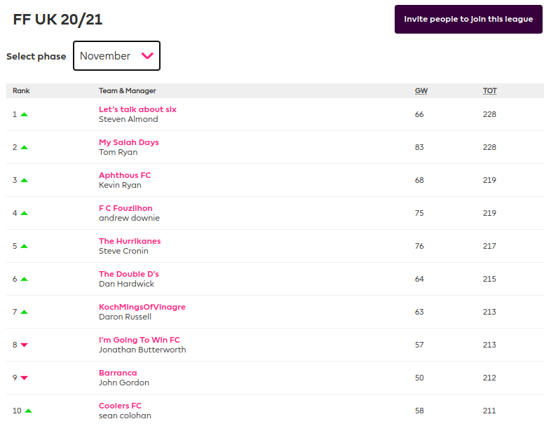 This was on overall rank – hard luck, Tom Ryan who got the same score. But – plot twist – Tom actually got the best GW score of 83 and as such, qualified for the FFUK Champions League. Worked out pretty well then!