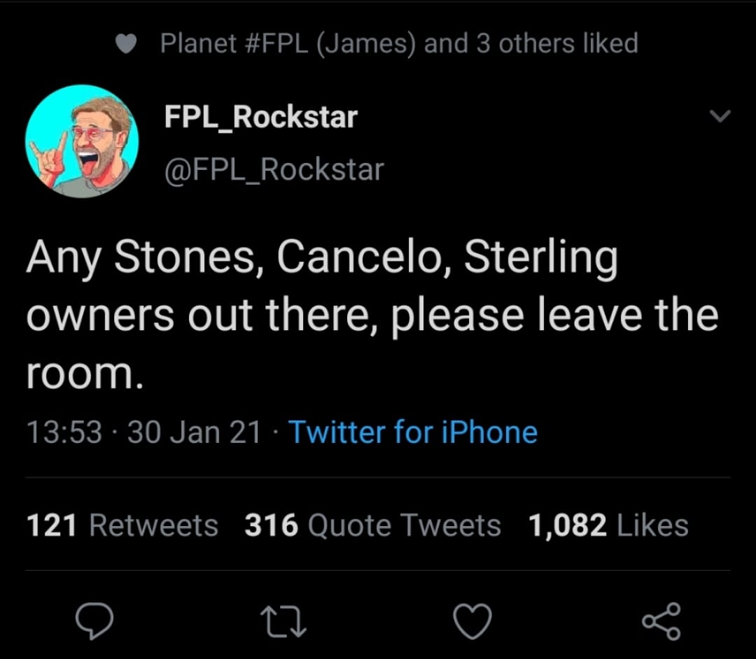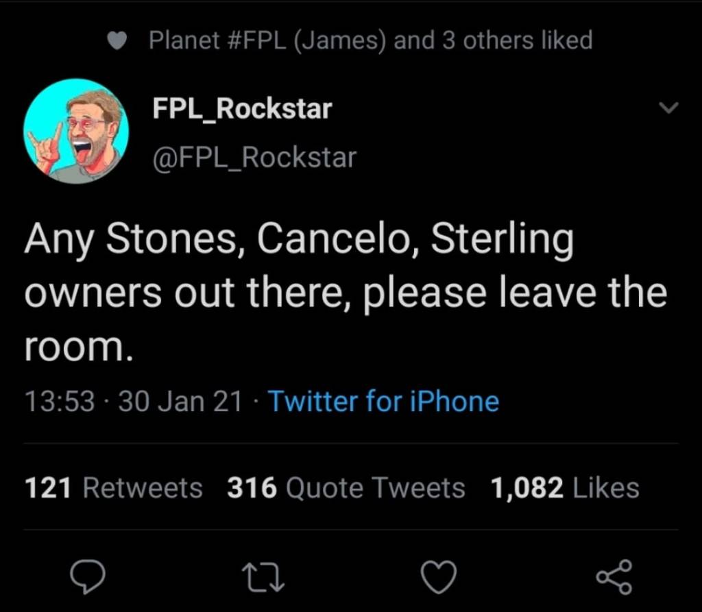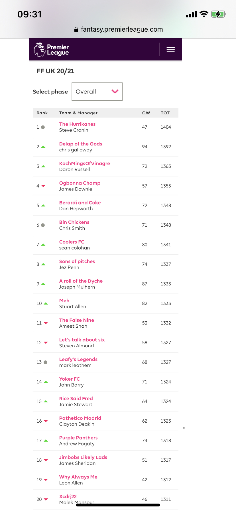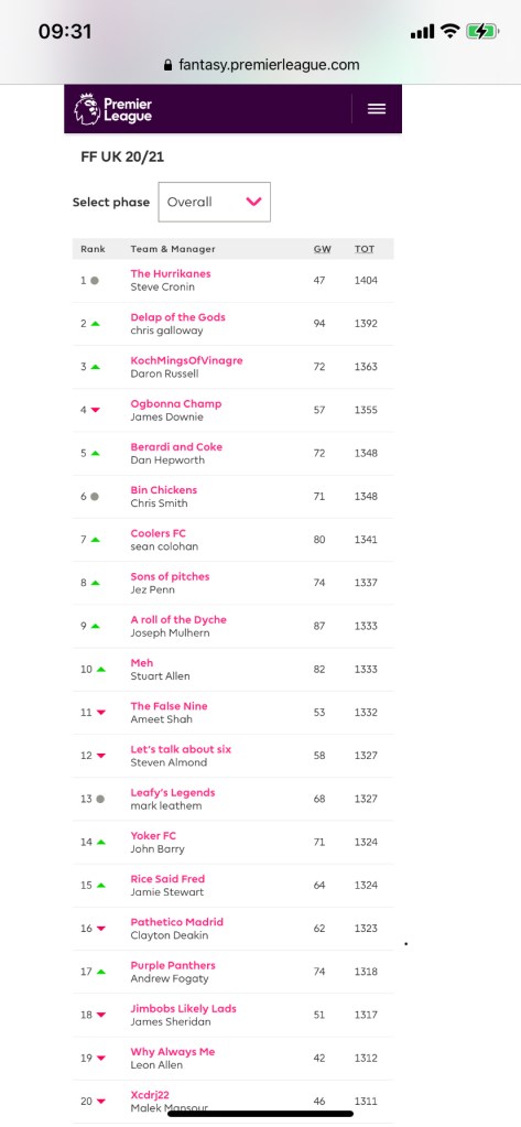 It’s not even 3 pm Saturday and it’s looking like being a long weekend for many FFukers. For my part I’ve brought in DCL (2) and Stones (0) whilst already owning Cancelo (0) and being too cheap to buy Dias (8). Tom Newman (64) went -8 to bring in Cancelo (0) and had Wilson (13) second sub. Jake Walker (101) took a – 4 for DCL (2) and made him vice captain to Cancelo (0). Ouch.