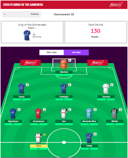 Well gentleman what another crazy FPL GW 32 has provided us! From ecstasy with no fewer than 32 managers, having used their Triple Captain Chip on Kane, watching the points role in; to the agony of Spurs star man rolling his ankle under an innocuous challenge in the last minute of the Everton match subsequently ruling him out of the GW Double Header! AS was pointed out in the WatsApp group the failure to play both games of a highly backed Triple Cap DGW seems to something of a curse!! There was however cause for celebration when Spurs faced up to Southampton as Son grabbed a late winner from the spot providing the only manager in the FFUK top 50 not to Cap Kane with some needed additional points, (24) for that one moment, well done @JoeMulhern.