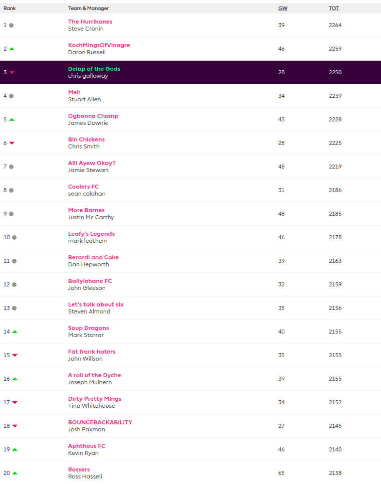 Poor Stephen Fielden (218th) only amassed 12pts and he had 10 players playing!!! Dire.