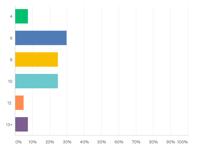 Some what surprisingly, 30% of us are happy with a 6 point haul, while at 50% of us would look for 8 or 10 points.