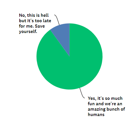 18% at fairly chilled out 4/10, meanwhile 33% of us are biting finger nails at 6 and 7/10. Shout to the 8% who are suffering from previous nightmare GWs and are constantly stuck at 11/10. We’ve all been there!