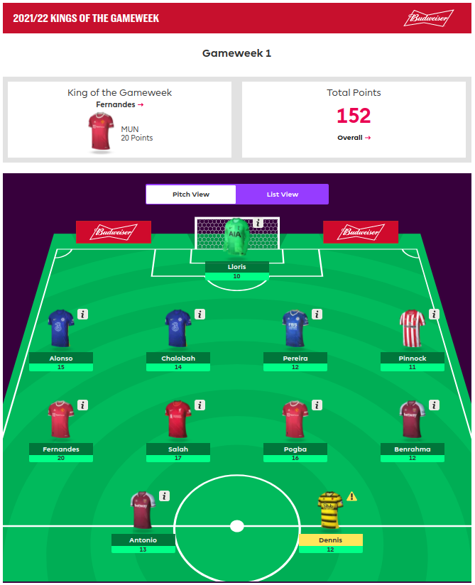 The two most owned players were the top scorers so that goes some way to explaining the massive totals. Elsewhere it was a mix of some popular picks like Antonio and Benrahma and some much less popular picks like Dennis and Chalobah. But plenty of food for thought and price changes have already begun – note to self I must resist making early moves however tempting it might be.