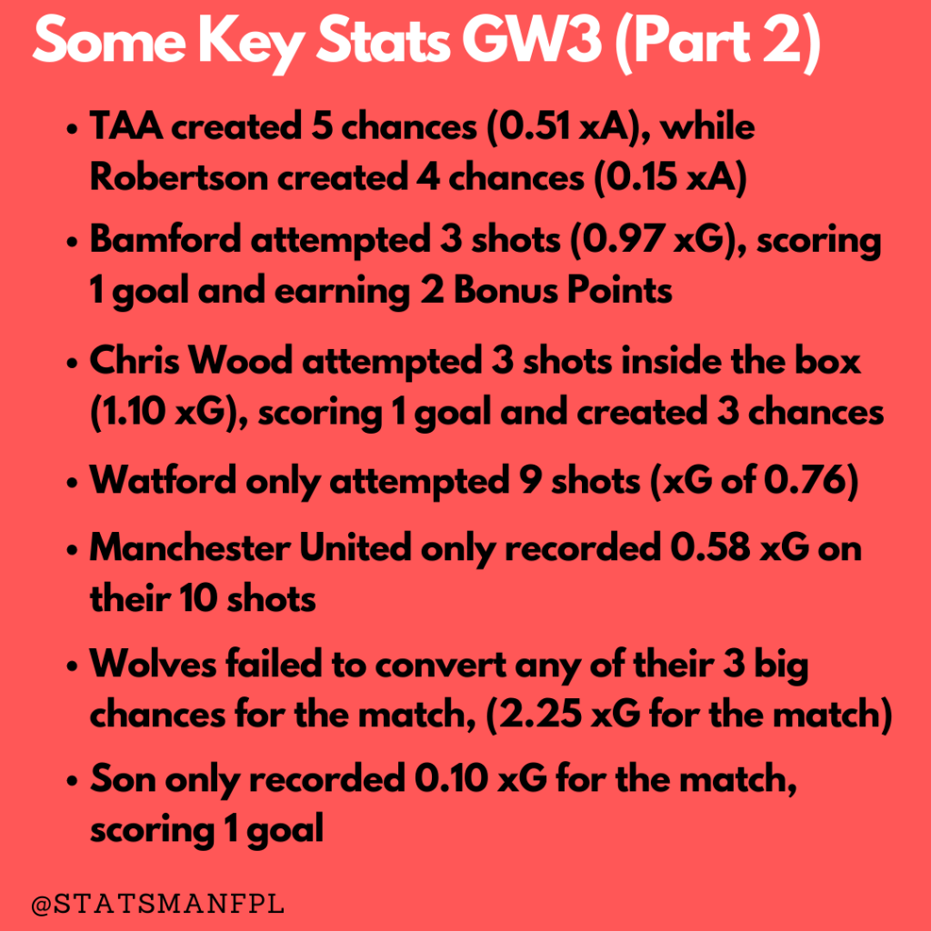 The big game of the weekend saw Liverpool face Chelsea in the Saturday early evening kick off. Havertz header cancelled out by Salah’s penalty, after GW2 hero Reece James was sent off for handling the ball on the line. Chelsea very much passing the defensive eye test once again.