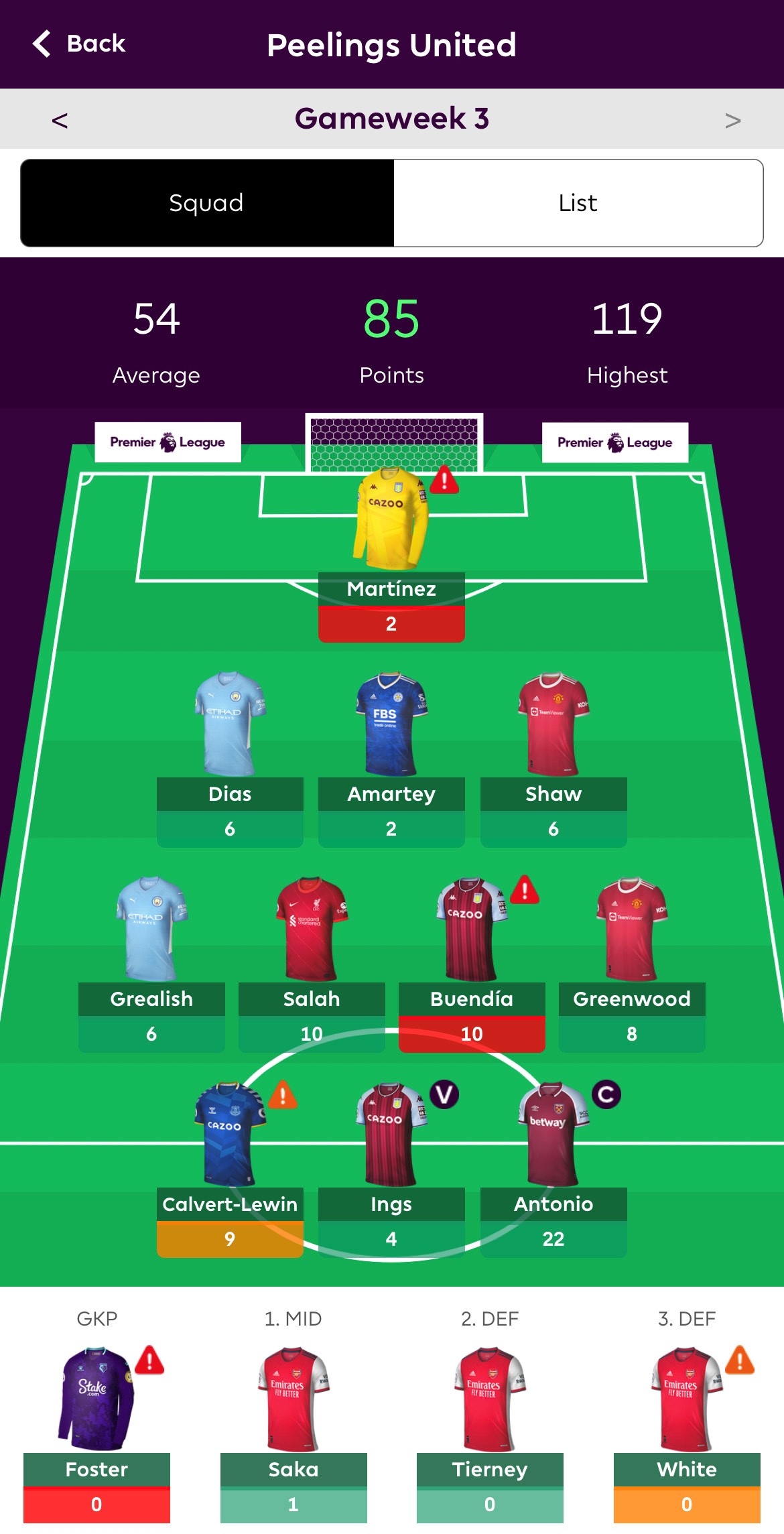 Elsewhere saw goals for Buendia (before heading off on international duty and thus missing GW4 along with Martinez, Le Celso and Romero). Antonio, Greenwood, Son, Vardy and DCL amongst the goals yet again, with the latter having to argue with Richarlison to take the pen. Kids hey?!