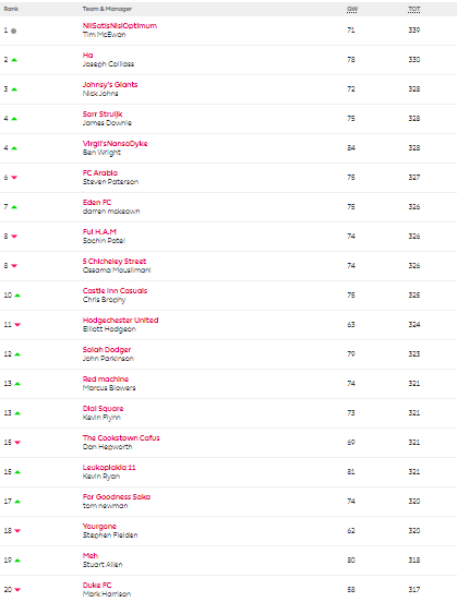 Well what can i say, Tim McEwan (1st) continues to dominate the league having seemingly made the No.1 position his own this season, well done mate!! Top FFUKer this week goes to goes to JAMES TUCKER (94th) with an excellent return of 86 points. The Ronaldo, Lukaku 1-2 working a treat for him!! Well done!!