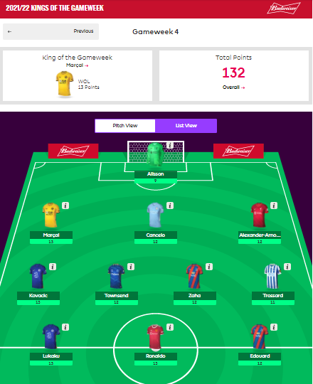 Some strong performances in the Kings of the GW, with Edouard finding his way in there after his 9 minute cameo!! at 6.5m he could be one to watch as a returning enabler. TAA is quickly becoming a mainstay as i am sure will Ronaldo and Lakaku