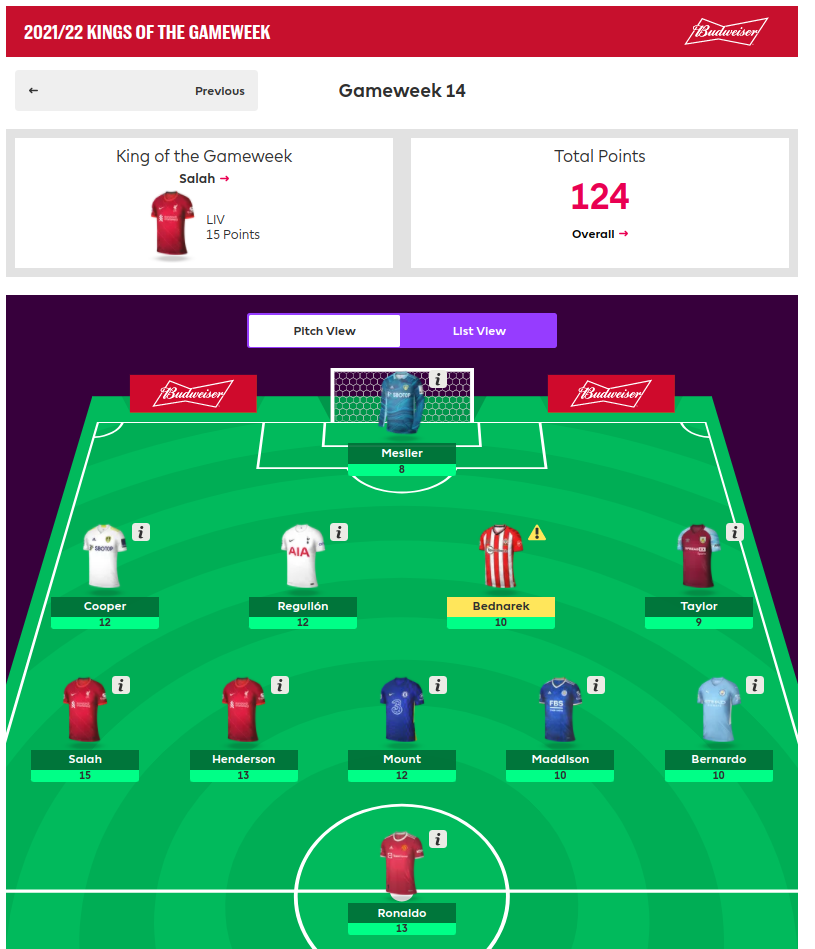 That’s it from me Folks. GW14, also wrapped up the 2nd round of the cup. I am happily though by 5 points but Bakes will be in touch soon with his usual CUPDATE.