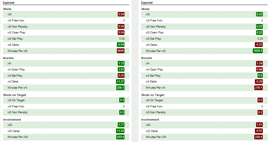 Sunday brought a mixed bag with BUR and the Hammers playing out a 0-0 draw, all the talk of Bowen and the ongoing questions around Antonio prompted me to have a look at their respective stats. Ant in the BUR match had an XG of 0.07, more concerning is that over his last 4 matches his XG is 0.22 with 6 shots and just 16 penalty area touches! Bowen had an XG of 0.09 in the match and over the past 4 GWs has an XG of 1.03 with 9 attempts, his XA is a lowly 0.18! It has been a difficult run of games for the Hammers when viewed in the context of FDR however there is definitely food for thought here for owners and potential buyers alike.