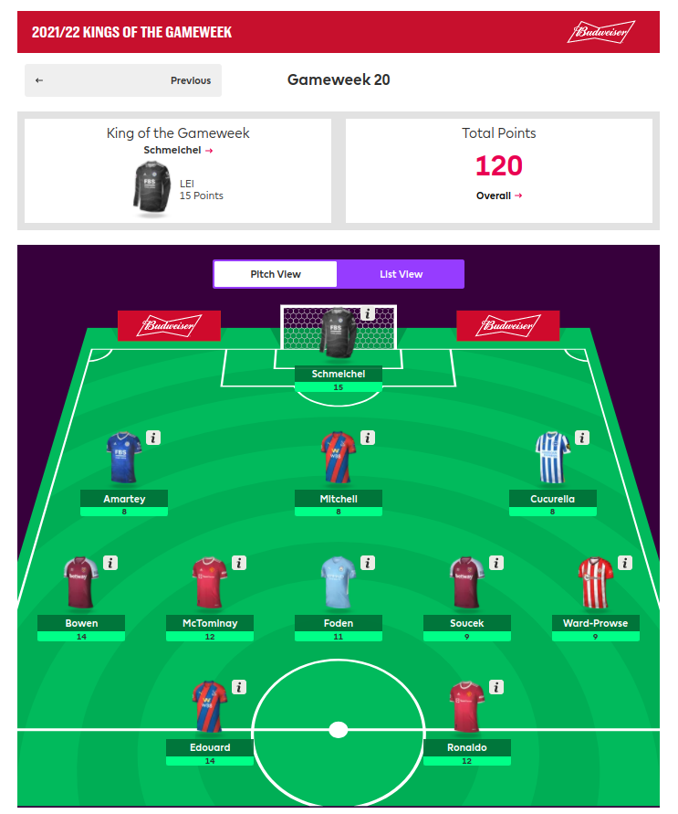 Leicester’s unexpected 1-0 win against the “Mighty Reds” of Liverpool was a shock to many of us – especially Jurgen who was clearly devastated by the dropped points. Schmeichel picked up a whopping 15 points with a clean sheet, penalty save and maximum bonus. Amartey (just £3.8M) was the pick of the defenders with 8 points.