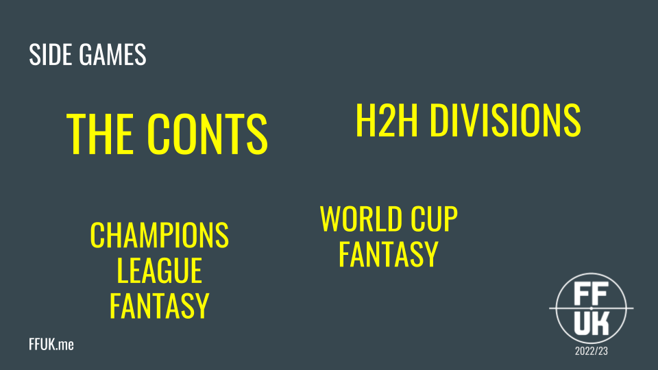 For more info see below, these are all additional entry fees on top of the main entry fee and open to everyone in the FFUK league. Please ensure you have paid the relevant entry fee before the GW1 deadline.