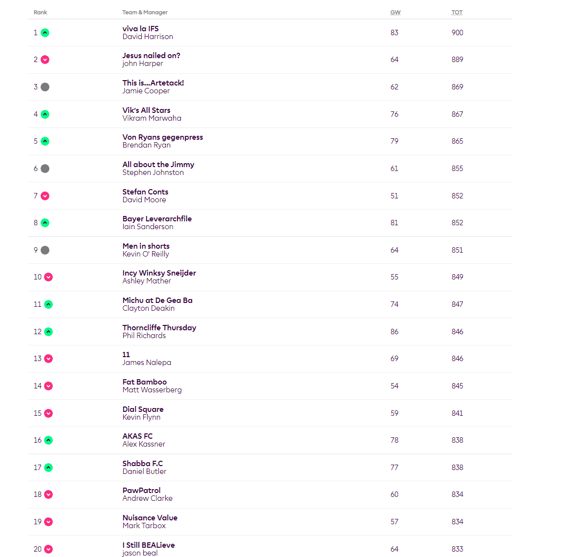 So, while we are on it, MOTM 🏆 for October was DAVID HARRISON, absolutely smashing 1st place by 31 points with a return of 448. Big Dave as he can now be affectionately known, also got his Bench Boost out for added security (put it in his check in luggage), which with Almiron (12) and Mitchell (11) appears to have been very well timed!! Dave did not even have to sweat over the TAA (C) pick (4)!!! In Big Dave’s back four, TAA was accompanied by Dalot (9), Trippier (11) and Cancelo (6) – I’d say unlucky Dave but you’re considerably better off than many with that £50 MOTM prize in your sky rocket! Well done BD.