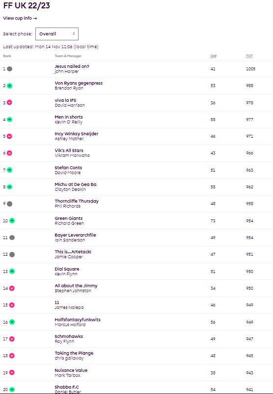 As ever the CONTS continues to cause distress and agony as we approach the Nightmare at Christmas!! This weeks unlucky manager is …. Phil Smith scoring 27 points, another victim of the Haaland Cap! Take care FFUKer!!