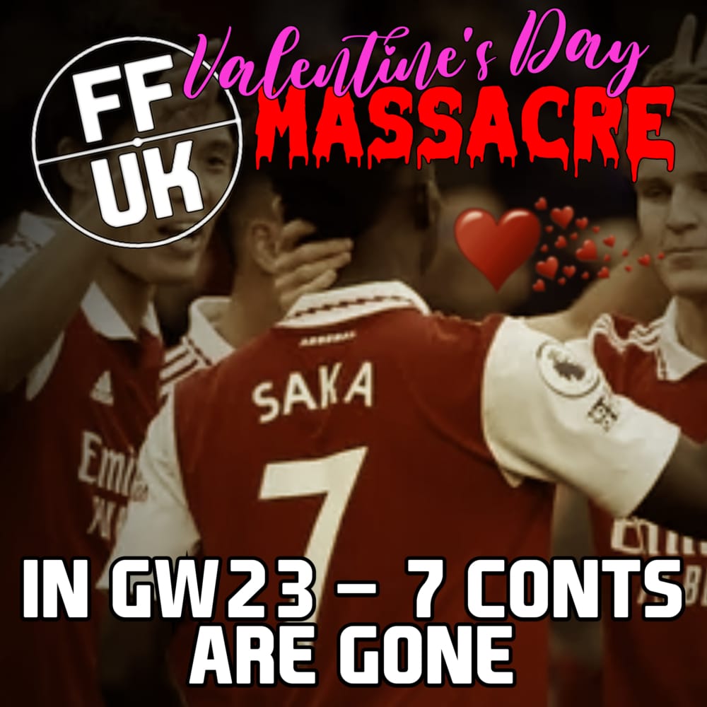 What a week in the world, a Double Game Week that included City and Arsenal assets, Valentines Day which resulted in 7 Conts being evicted (more on that shortly). I’ve chosen a tune that pays homage to the recently departed Trugoy from De La Soul, 3 Ft high and rising was a seminal album for me as a kid growing up and has a tenuous link with Valentine’s Day so please allow me to indulge myself.