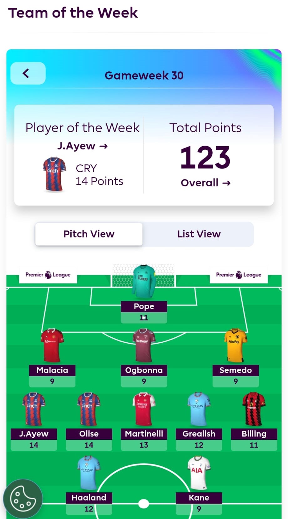 This week’s unlucky cont is James Simpson (97) who bravely went without Haaland and despite a return from Captain Watkins couldn’t overcome penalty misses from Toney and crucially Salah.
