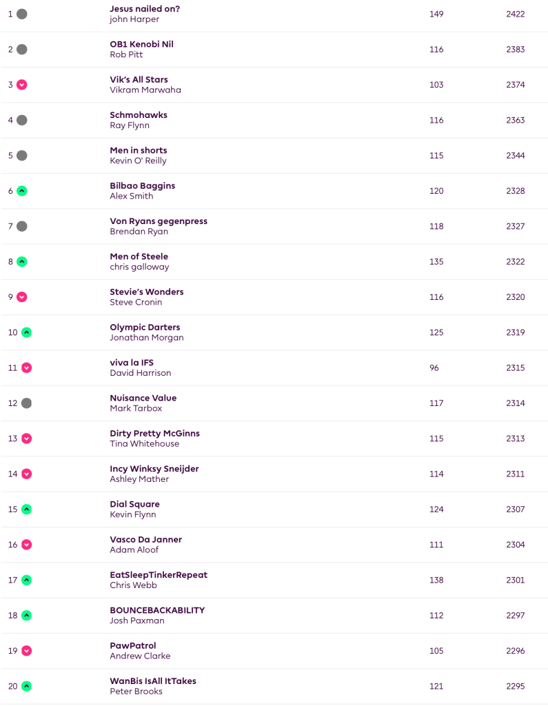 John is also up to 235 in the world. FFUK me! Amazing John and good luck for the last few game weeks.