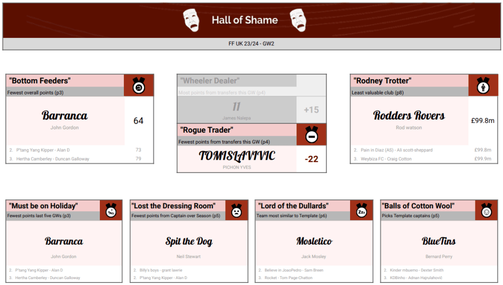 And as with any good story we have the “hall of shame”, with John Gordon propping up the league vying for the wooden spoon.