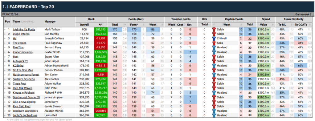 Our second victim of the season is the unfortunate Trevor Dennison who managed to score 34 points even with Salah Captain, Rashford doing him no favours at all. Don’t let the door hit you on the way out.