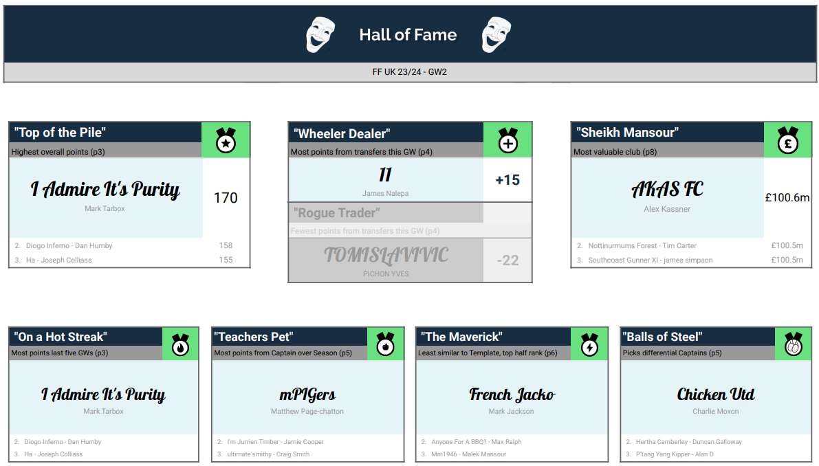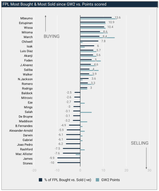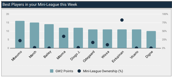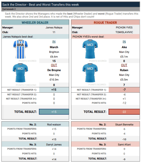 Great performance from James Nalepa on the transfer front selling KDB and bringing in March proved to be a master stroke generating a +15 point differential. Commiserations to Yves Pichon who sold Dias and brought in Ake for a -7 point swing #painful.
