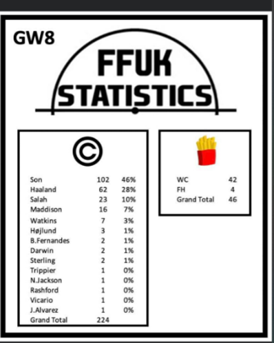 The FFUK league’s average score of 49 in GW8 puts us FFUKers in the top 20.6% of our member leagues.. must do better!