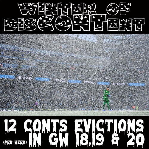 Quick reminder for anyone that hasn’t heard yet, The winter of disCONTent is upon us… its about to get even more brutal than ever before over the next 3 GWs with a whopping 36 FFUKers set to be evicted over Xmas. That’s 12 each and every week for the next 3 GWs. What’s that noise I hear in the distance? is that Roy Browne preparing his his bucket of hits to get him through this period.