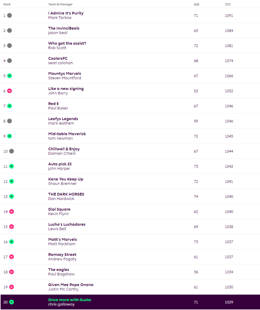 Goals were scored, assists were awarded (but not for Saka), bonus points were won, a little rest then the long wait for auto subs. Its all done now. Lets check to see who is set best for the festive fixtures.