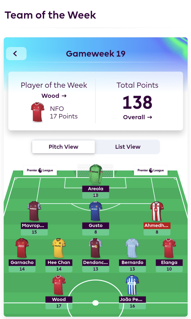 I actually wasn’t well over Christmas, which I think helped as my FPL expectations were quite low. I’ll be honest, I’m not a fan of Christmas music and while I had a strong yearning for some Elton John another El was actually the answer – El-Vis. (Elvis). It was going to be a blue Christmas and the only saving grace was going to be a win for Chelsea. Fortunately, that did happen, Chelsea are now sitting in a comfortable 10th place and are 10 points ahead of Luton Town. How about that? I reckon CFC should be safe for another season in the Premier League, what a result.