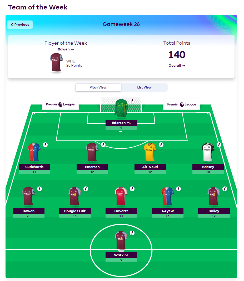 There were no Liverpool, Chelsea, Spurs or Luton players in the team of the week, obviously. Did you own any others from the above team of the week? It was a good week to own Villa and Wham players for sure.