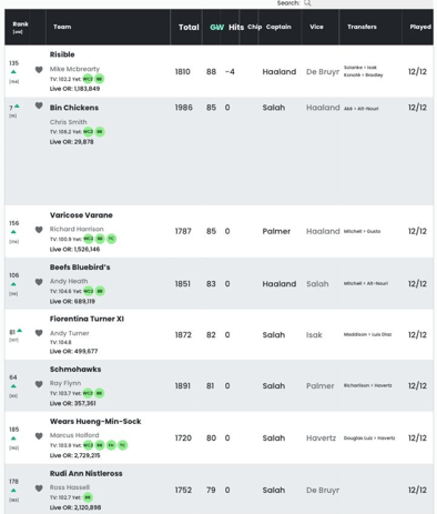 Ultimately, Salah and Haaland both scored, earning eight points each, while Son and Palmer contributed assists, garnering five points each, resulting in minimal impact solely due to captaincy decisions.